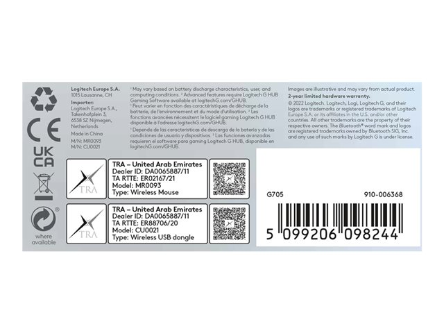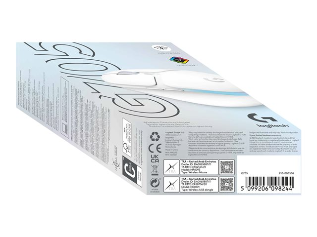Logitech G G705 - Hiiri - pienet kädet - 6 painiketta - langaton - Bluetooth - USB Logitech LIGHTSPEED -vastaanotin - valkoinen 910-006367