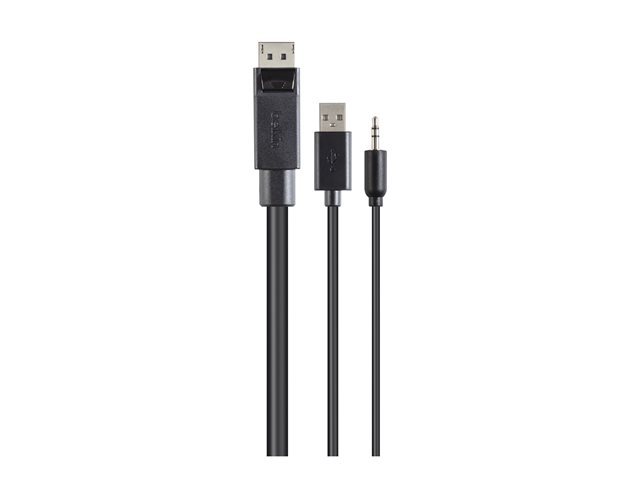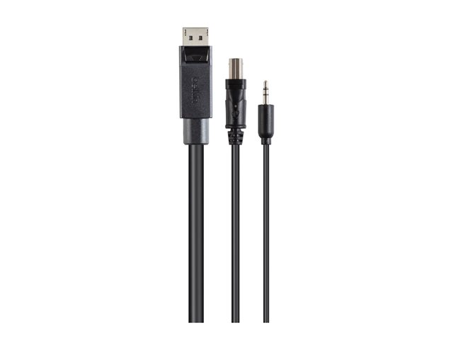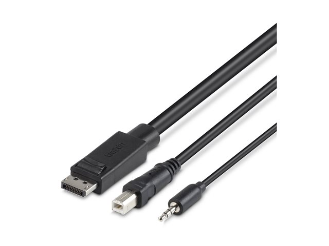 Belkin Secure KVM Combo Cable - Näppäimistön / hiiren / videon / audion kaapeli - TAA-yhteensopiva - USB, mini jack, DisplayPort (uros) to mini-phone stereo 3.5 mm, USB Type B, DisplayPort (uros) - 3.04 m - musta