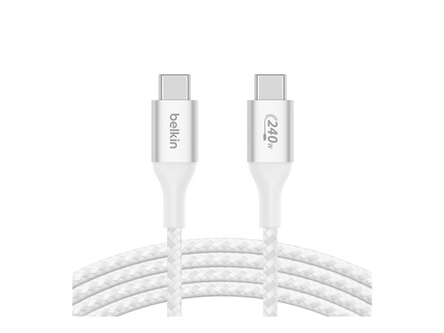 Belkin BoostCharge - USB-kaapeli - 24 pin USB-C (uros) to 24 pin USB-C (uros) - USB 2.0 - 1 m - virransyötön tuki jopa 240 W:n tehoon asti - valkoinen CAB015BT1MWH