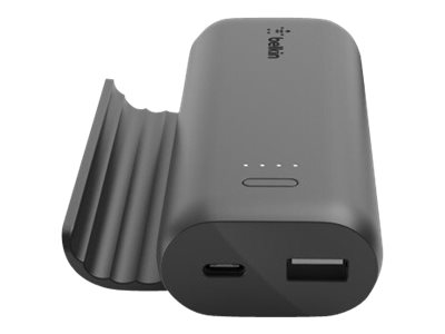 Belkin BoostCharge - Play Series - virtapankki - 5000 mAh - 12 watti(a) - 2 lähtöliittimet (USB, 24 pin USB-C) - johdossa: USB-C - musta