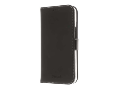Insmat Exclusive - Läppäkansi matkapuhelimelle - aito nahka, polykarbonaatti, puuvillaompeleet, pahvi + paperi - musta malleihin Apple iPhone 14 Plus