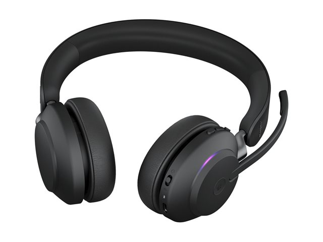 Jabra Evolve2 65 MS Stereo - Kuulokkeet + mikrofoni - korvien päällä - Bluetooth - langaton - USB-A - melua vaimentava - musta - sertifioitu Microsoft Teamsille