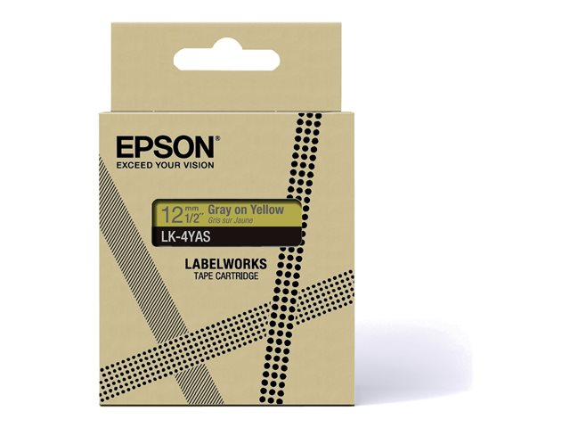 Epson LabelWorks LK-4YAS - Harmaa keltaisella - Rulla (1,2 cm x 8 m) 1 kasetti(a) ripustuslaatikko - nauhakasetti malleihin LabelWorks LW-C410, LW-C610
