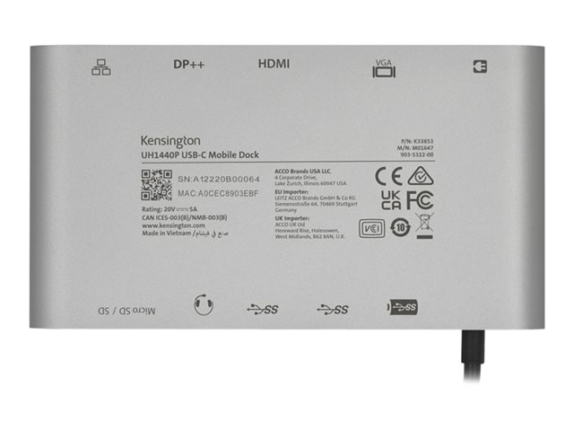 Kensington UH1440P - Telakointiasema - USB-C 3.2 Gen 1 / Thunderbolt 3 / Thunderbolt 4 - DP, HDMI, VGA - 1GbE K33853WW