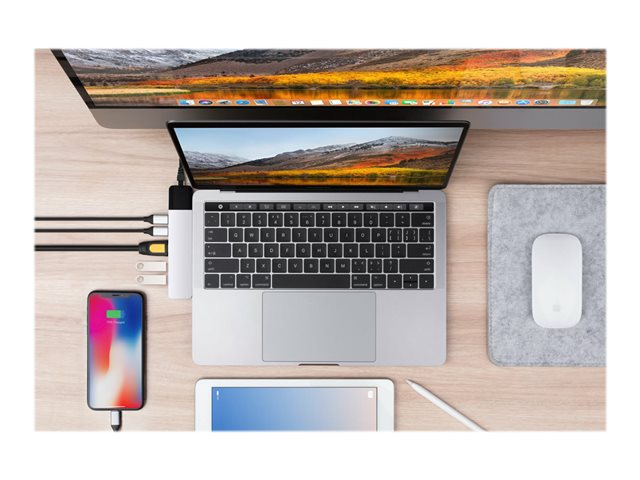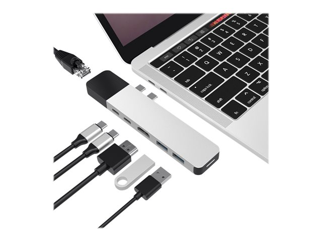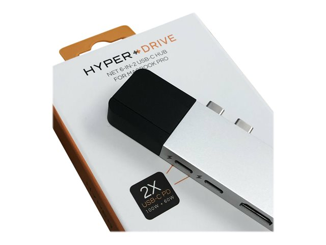 HyperDrive Net 6-in-2 Hub - Telakointiasema - USB-C x 2 - HDMI - 1GbE GN28N-SILVER